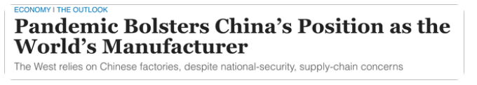《華爾街日?qǐng)?bào)》:新冠疫情鞏固了中國(guó)全球制造商的地位