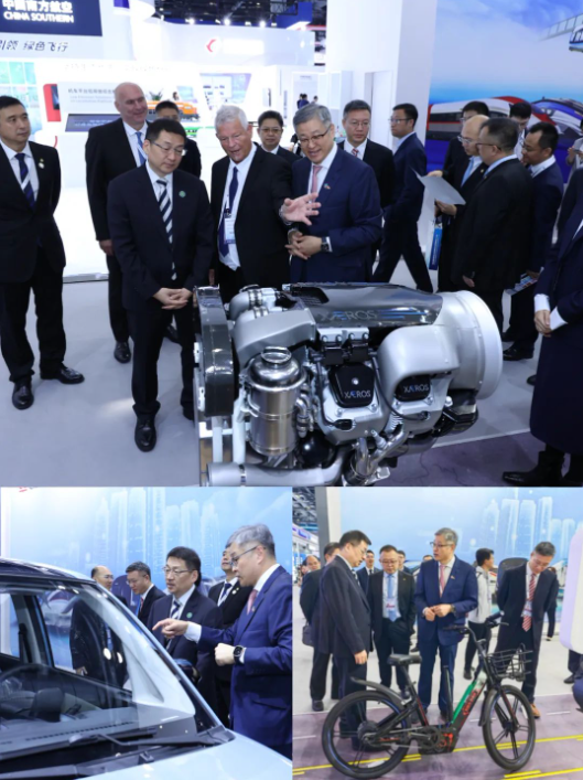 圍繞綠色可持續(xù),華商縱橫帶來最先進(jìn)的綠色陸空交通技術(shù)支持,本次展會華商縱橫攜全球領(lǐng)先的可持續(xù)清潔能源技術(shù)和綠色可持續(xù)交通展品,包括全球首創(chuàng)的三倍冗余技術(shù)的奧地利XAEROS混合動力飛機(jī)發(fā)動機(jī),加納Solar Taxi太陽能出租車,以及由國內(nèi)近室溫固態(tài)儲氣材料頂尖專家團(tuán)隊自主研發(fā)的氫能助力兩輪車等精彩亮相,吸引了眾多領(lǐng)導(dǎo)和嘉賓蒞臨展臺參觀交流。