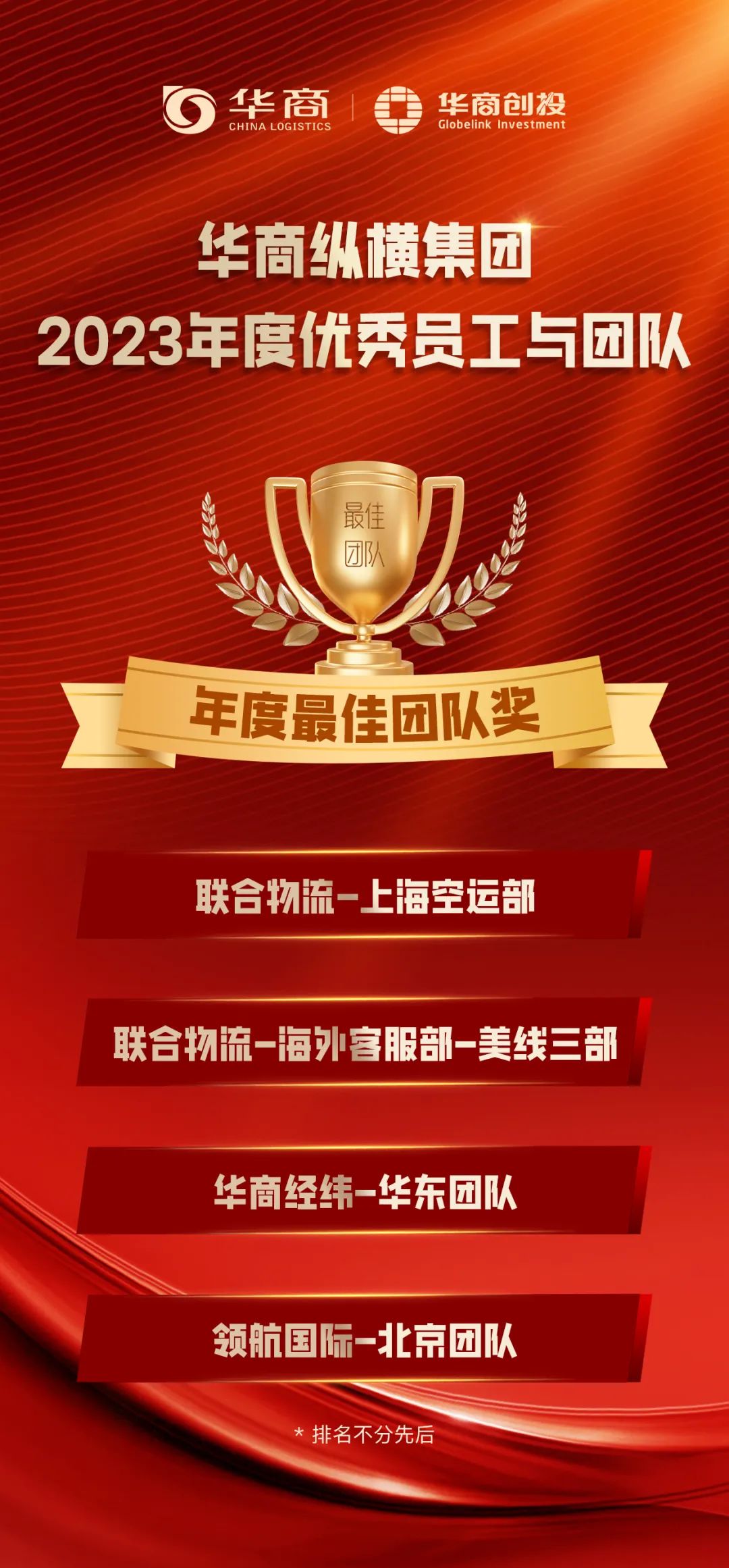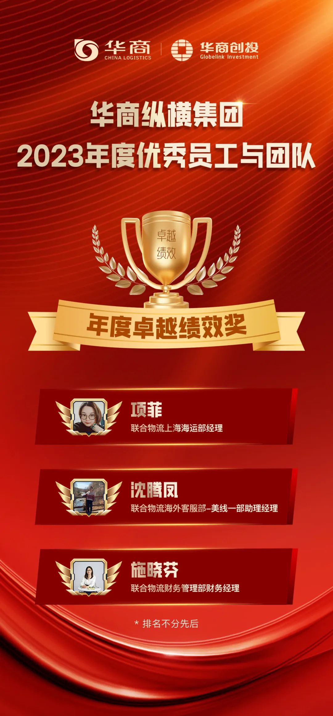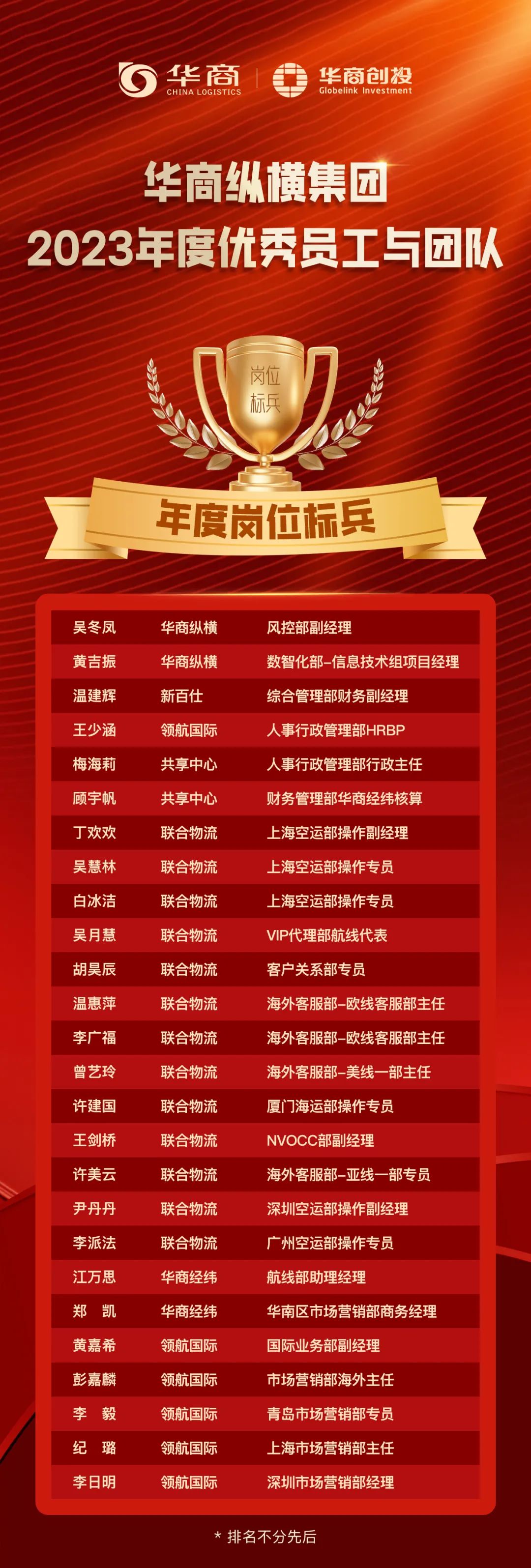 在華商,每一份赤誠的投入,每一個(gè)閃光的輸出,都不會被辜負(fù)。年末之際,我們通過2023年度“優(yōu)秀團(tuán)隊(duì)與優(yōu)秀員工”的評選活動,選拔出4個(gè)優(yōu)秀團(tuán)隊(duì)和29位優(yōu)秀同事,他們在工作中極具出色的表現(xiàn),為公司樹立了正面典型。希望以他們?yōu)榘駱?,激?lì)所有華商人追求卓越、快速成長。